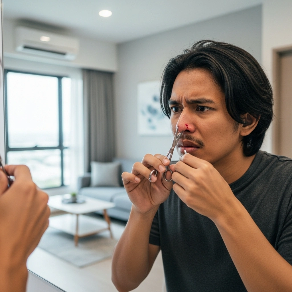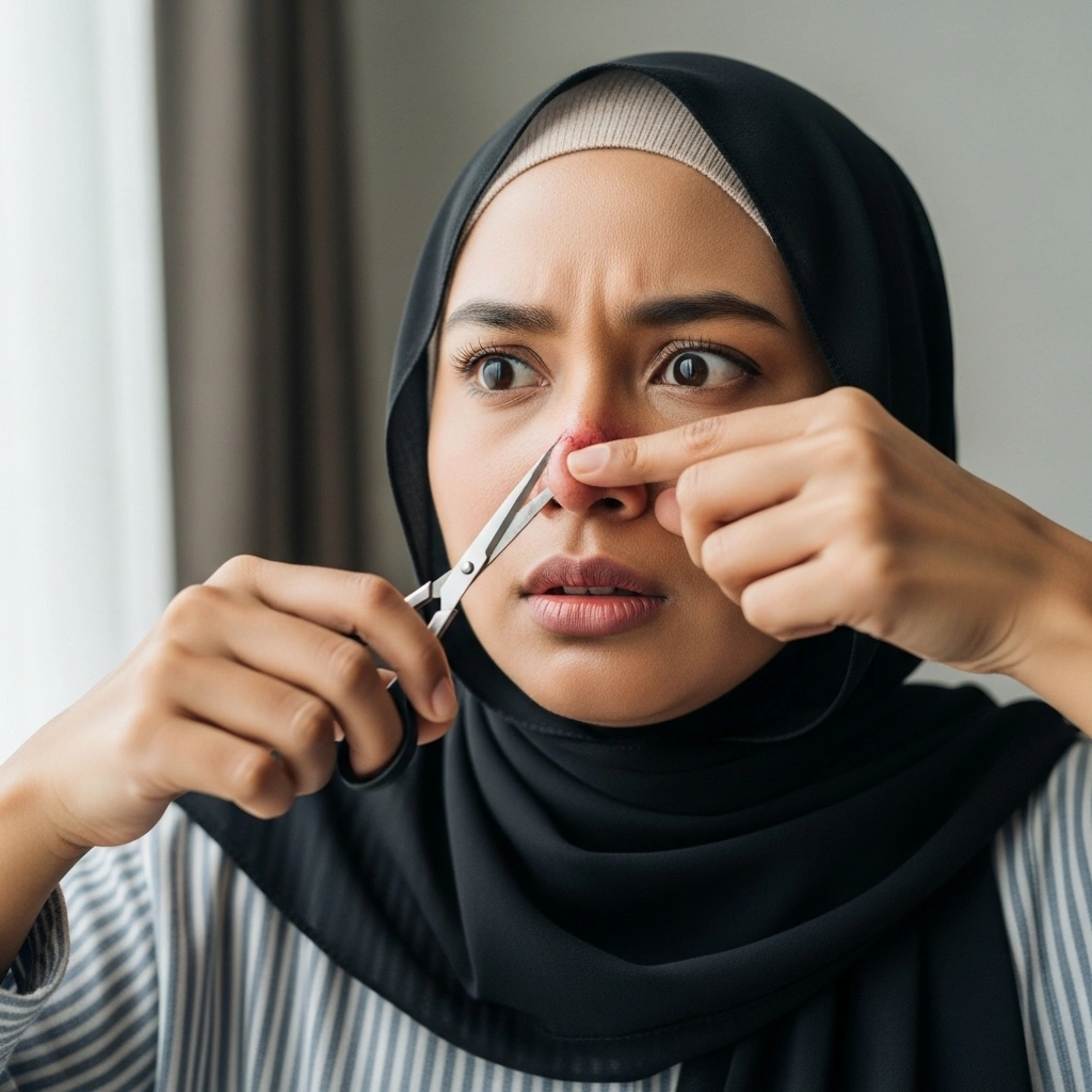 Bulu hidung susah nak capai, potong tak sekata, malah rasa sakit bila tersangkut.