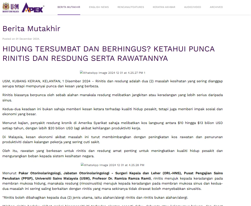 Ramai tak tahu, hidung kotor boleh ganggu sistem pernafasan dan sebabkan alahan berulang.